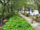 | 今年は少雨のせいか、花が小さく色づきも悪いようでしたが それでも高塔山公園を彩るあじさいを見物する方々で会場は 賑わっていました。 |