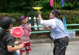会場内のフリーマーケット で大道芸が披露 されていました。 |