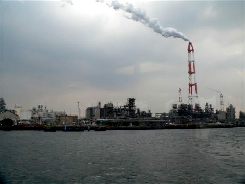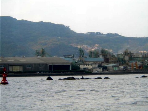 | 洞海湾の奥、八幡区の三菱化成です。八幡製鉄盛んな頃、二島から八幡まで通勤用の渡船があったそうです。 |