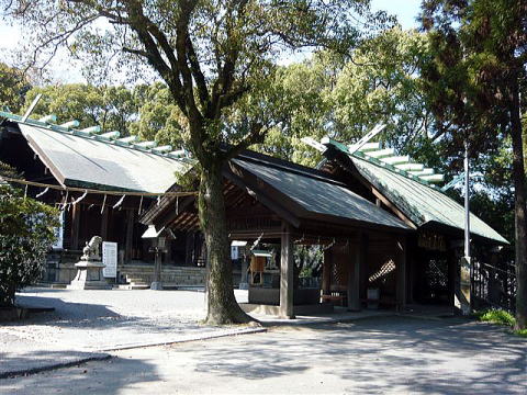 | 深い鎮守の森に包まれた本殿 |