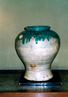 調度品の一つ一つに 昔日の若松の繁栄の名残を感じる 左の写真は上野焼の大壷 |