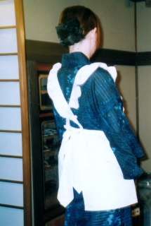 | 色とりどりの絽の着物に 懐かしいエプロン姿が とても似合って良い雰囲気 |