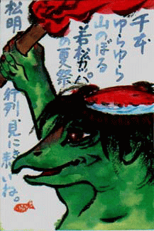 | 石炭、ごんぞう、花と龍のなんぼか昔、若松湊は黒田五十二万石の米の積み出し港として栄え、倉浜町の地名あり。そのすぐ近くの修多羅は中国から来た船が難破して、沢山の経典が流れついたのを惜しんで、心ある人達がこれを埋葬して経塚をたてたと云う由来を持つ地名です。ちなみにスタラと読みます。 その遥か前か、後かとにかく昔、筑前若松高塔山付近には、河童がうじゃうじゃ居て、あまりに悪戯がすぎるので、偉いお坊様に安養寺飛び地境内の高塔山の御地蔵様の背中に、大きな釘を打ち込まれて、封じ込まれているのですが、そのいきさつは火野葦平さんの御話に詳しく書いてあるから読んで下さい。 それで話も飛びますが、今若松は「町起こしに燃え上がろうかな」という気配が有り私達もなにか出来ればと、このホームページをおそるおそる、厚かましく開かせて戴きました次第です。 |