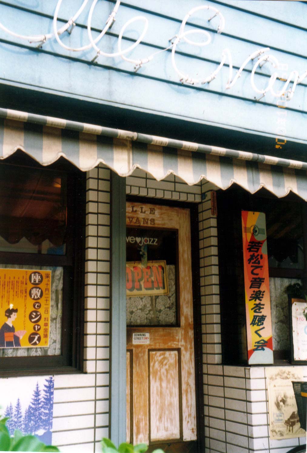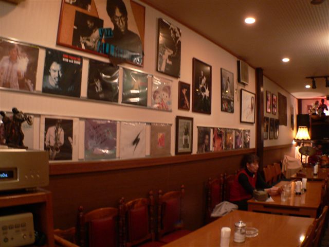 | 店内の壁には、若松で演奏したジャズメンのサインが一面に飾られています。 |