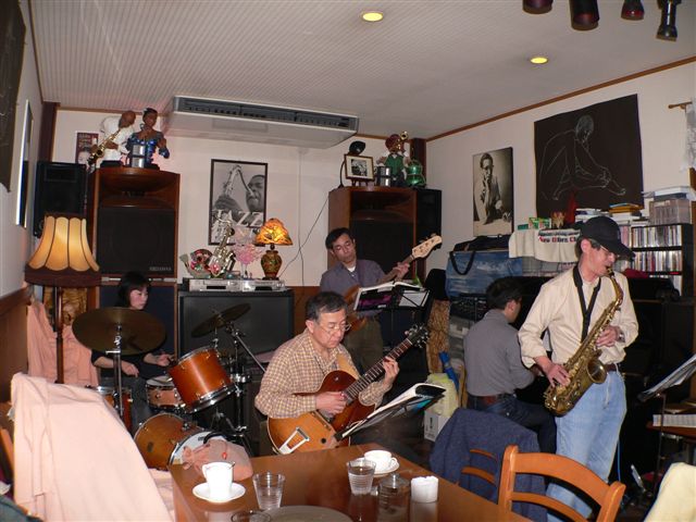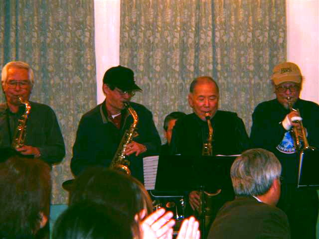 | 総理府から表彰を受けたジャズバンド「ニュースカイラーク」とジョイントする久保田氏 |
