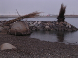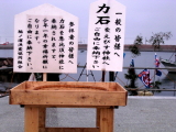 | 玉せせりの際に御座船から海中に投じられる金銀の玉。 お神酒として幾樽もの振る舞い酒が提供される。 一般の参観者も力石を奉納できる。 |