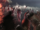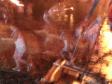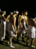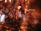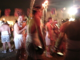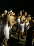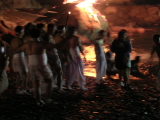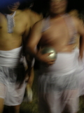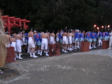 | 午後5時。蛭子神社で全員で潔斎、祭りが始まる。 浜で若潮を汲み妙見神社に奉納、 その後4km離れた小竹の白山神社に駆け上り参拝する。 |