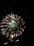 | 祭りを締めくくる花火。冬の海の澄んだ夜空を花火が彩る。 | ||