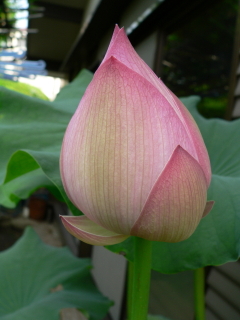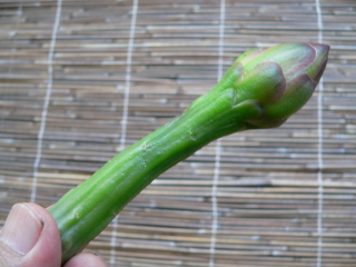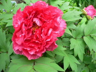牡丹に大きな芽がついています