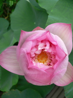 春雨と陽気に猫の額の花飾り。