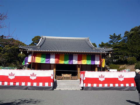 本殿前の豆まき舞台