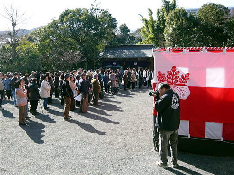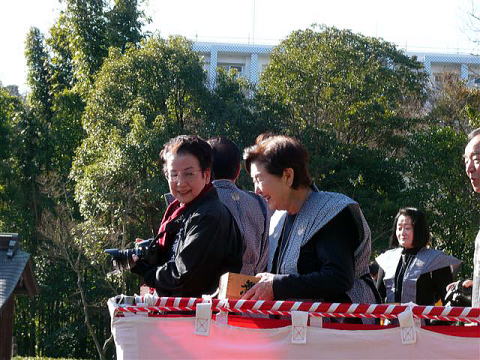北橋市長婦人の発声で豆まき開始
