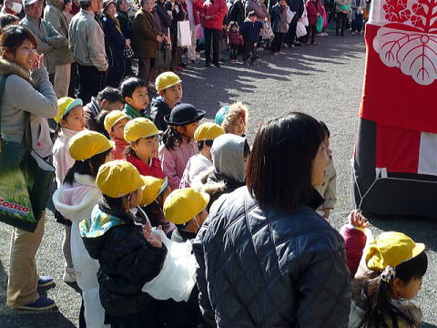 沢山のお菓子などが撒かれ、